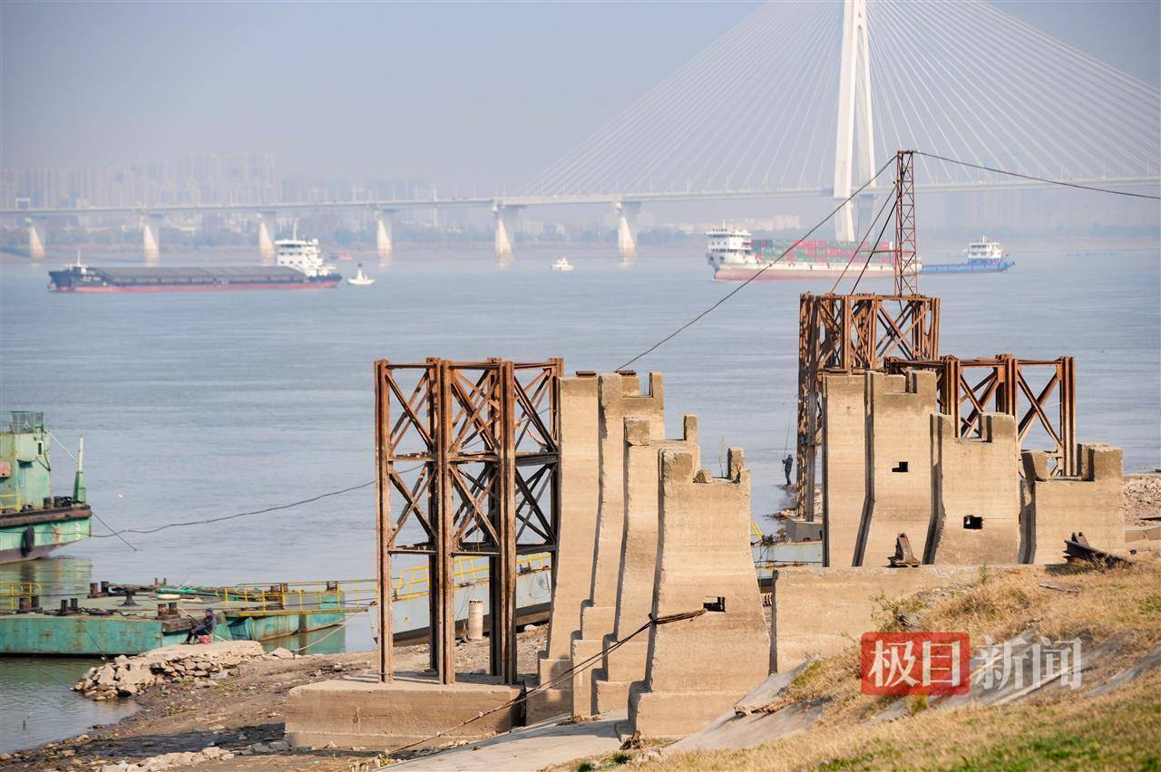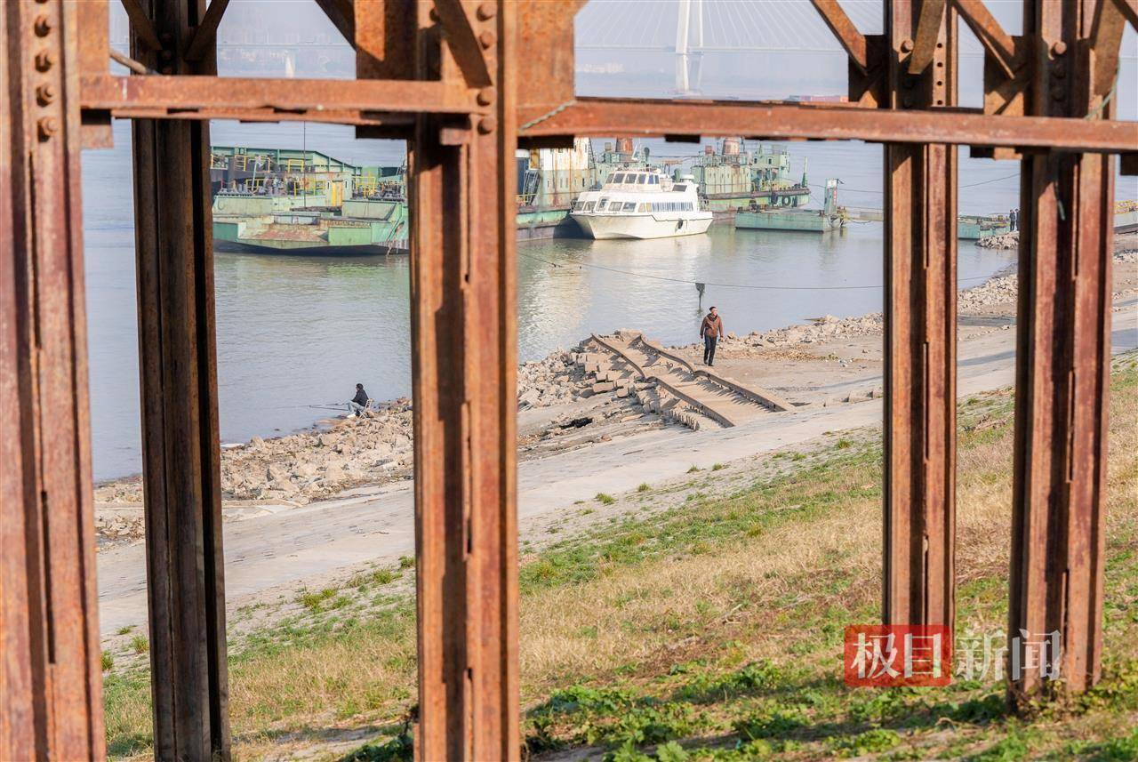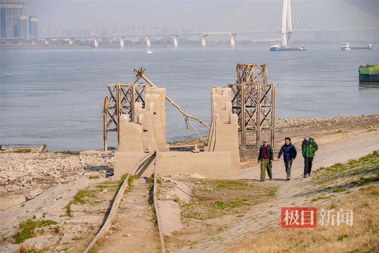 据了解,粤汉铁路是中国近代重要的交通干线,武昌江滩四美塘段的铁轨与栈桥遗迹,是当年铁路运输的重要遗存。随着长江水位季节性变化,这些遗迹每年冬季都会露出水面,吸引众多历史爱好者和市民前来探访。