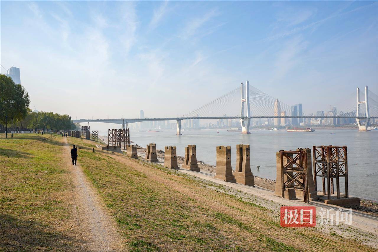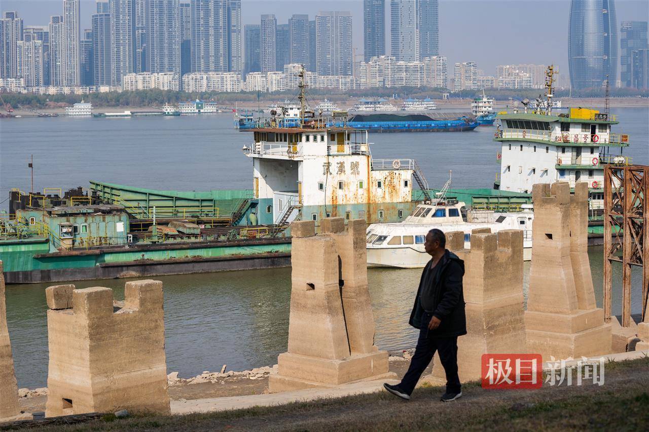 不少市民在散步途中偶然发现这一“惊喜”,纷纷驻足观赏、拍照留念。一位老人索性坐在一段老铁轨上,静静凝视着江景,神情悠然。“没想到能亲眼见到这些老物件,仿佛触摸到了武汉的历史脉络。”老人感慨道,这些遗迹不仅是城市发展的见证,更承载着一代代人的集体记忆。